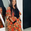 Make a grand entrance in this stunning prom dress designed to turn heads. A luxurious short boubou dress crafted from high-quality african print for a sleek, smooth finish flattering silhouette hugs your curves in all the right places.Delicate embellishments add a touch of sparkle and glamour ,flowing dress moves gracefully with every step you take.Perfect for prom,evening,wedding,homecoming events, or any special occasion.