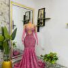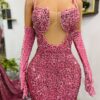 Make a grand entrance in this stunning prom dress designed to turn heads.A luxurious pink floor length dress crafted from high-quality sequin for a sleek, smooth finish flattering silhouette hugs your curves in all the right places.Delicate embellishments add a touch of sparkle and glamour ,flowing dress moves gracefully with every step you take.Perfect for prom,evening,wedding,homecoming events, or any special occasion.