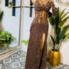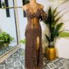 Make a grand entrance in this stunning prom dress designed to turn heads.A luxurious chocolate brown dress crafted from high-quality lace for a sleek, smooth finish flattering silhouette hugs your curves in all the right places.Delicate embellishments add a touch of sparkle and glamour ,flowing dress moves gracefully with every step you take.Perfect for prom,evening,wedding,homecoming events, or any special occasion.
