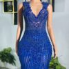 Make a grand entrance in this stunning prom dress designed to turn heads. A floor length blue dress. Crafted from high-quality lace for a sleek, smooth finish flattering silhouette hugs your curves in all the right places.Delicate embellishments add a touch of sparkle and glamour ,flowing dress moves gracefully with every step you take.Perfect for prom,evening,wedding,homecoming events, or any special occasion.